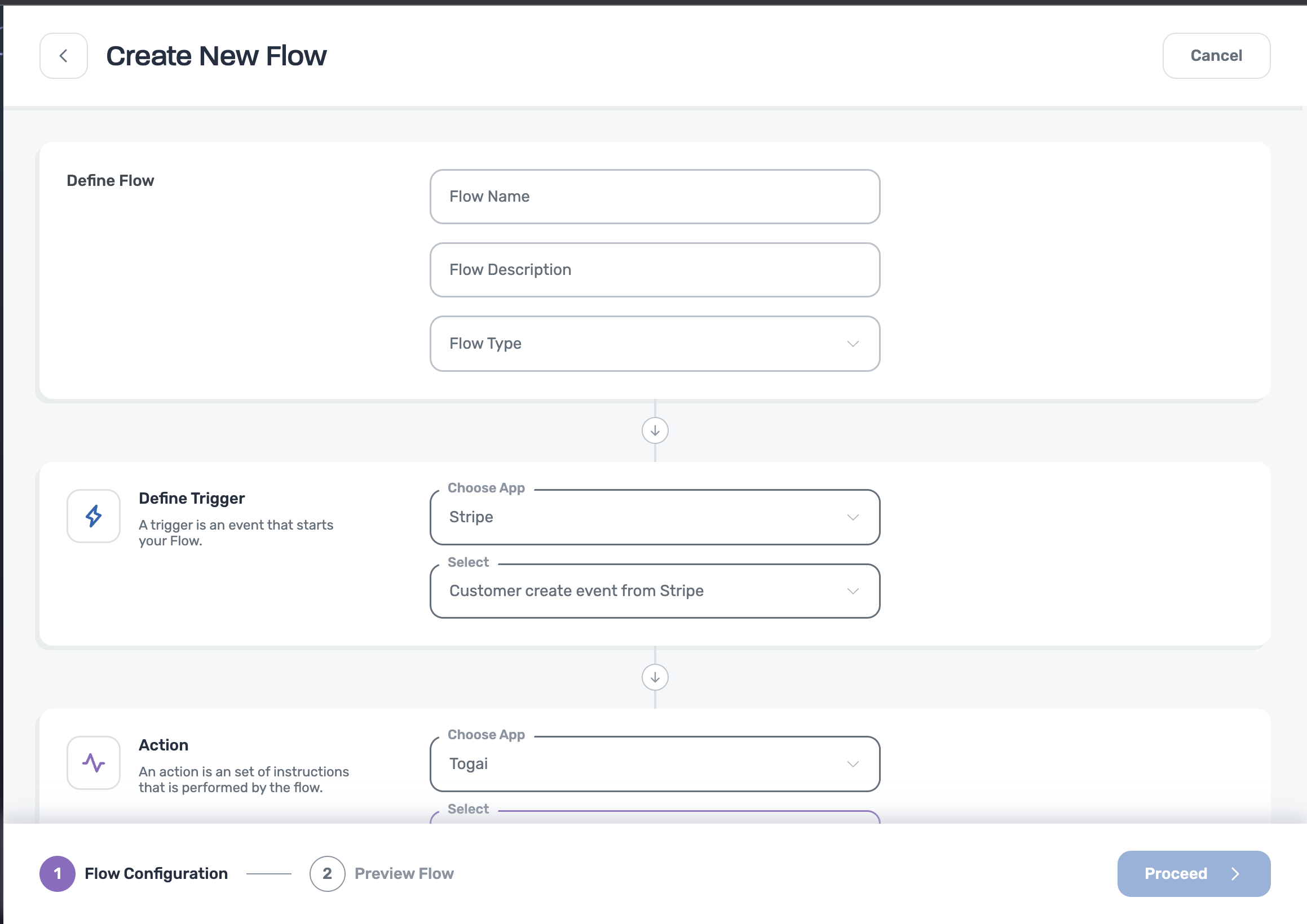 - Outbound Flow - based on events occurring in Togai, changes are made to the connected third party app